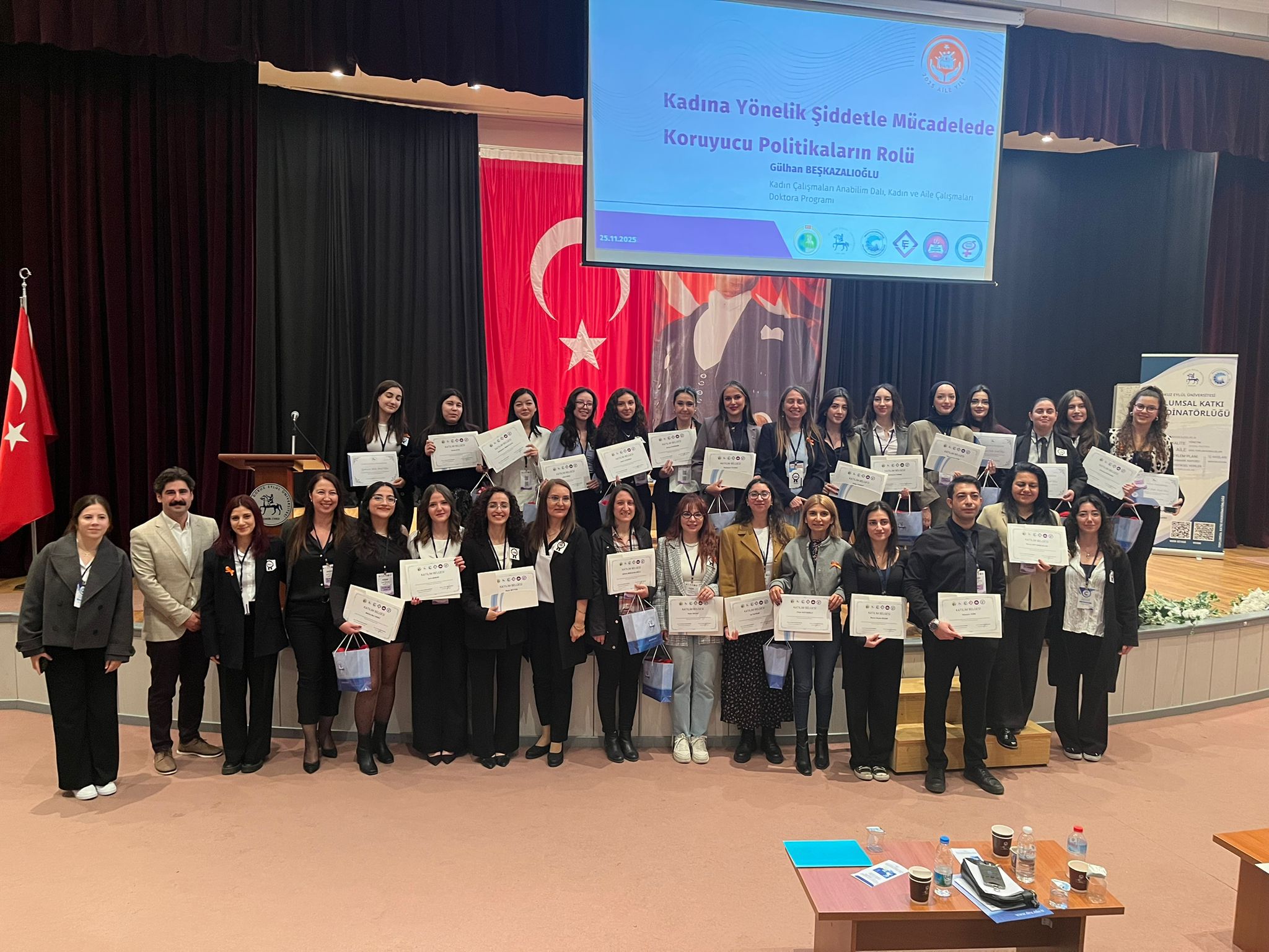 Üniversitemizde “Kadın Odaklı Sosyal Politikalar ve Hizmetler” Konferansı Rektör Yardımcımız Prof. Dr. Dilşen İnce Erdoğan’ın katılımıyla gerçekleştirilen konferans, İzmir Valiliği ile üniversitemiz arasında imzalanan Ailenin Korunması ve Güçlendirilmesi İş Birliği Protokolü kapsamında Toplumsal Katkı Koordinatörlüğü tarafından düzenlendi.
